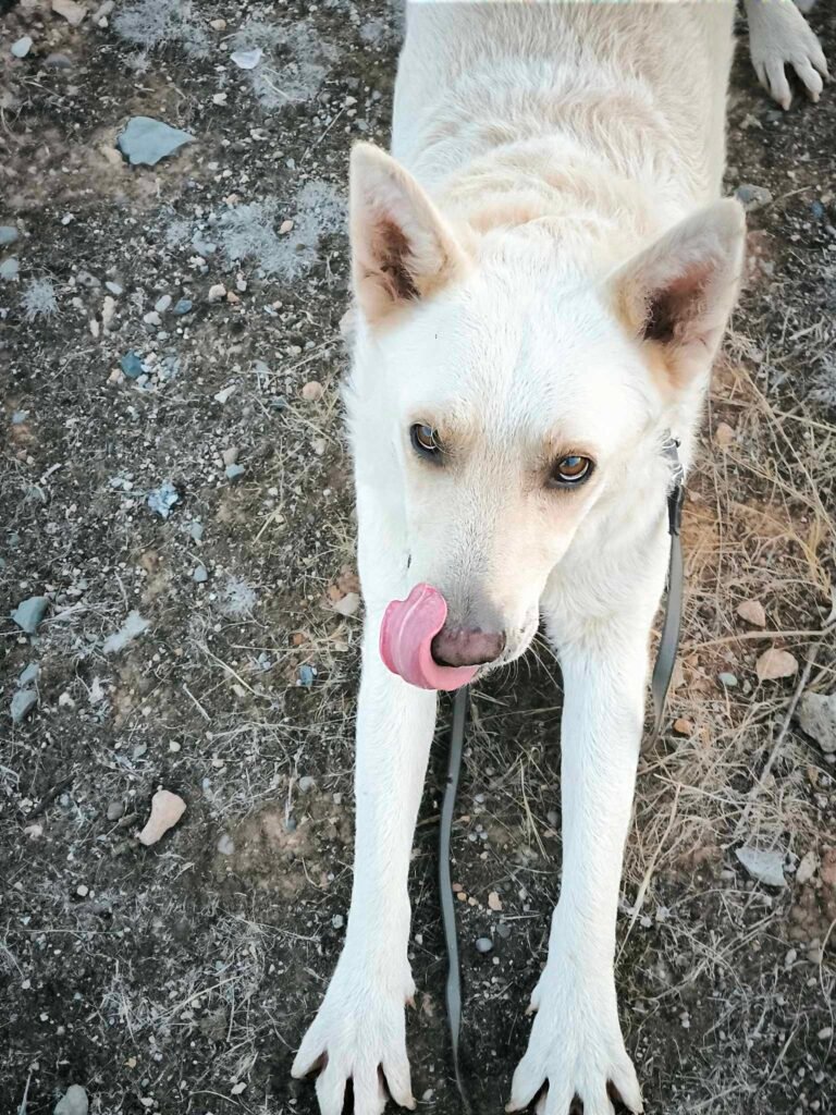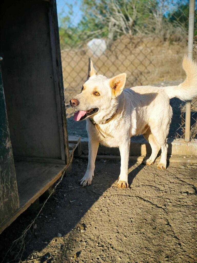 Ghost, a 2.5-year-old boy, was found roaming the buffer zone with his friend Panther. Kind soldiers had been feeding them, but before leaving for their country, they made sure to bring Ghost and Panther to safety at our shelter.