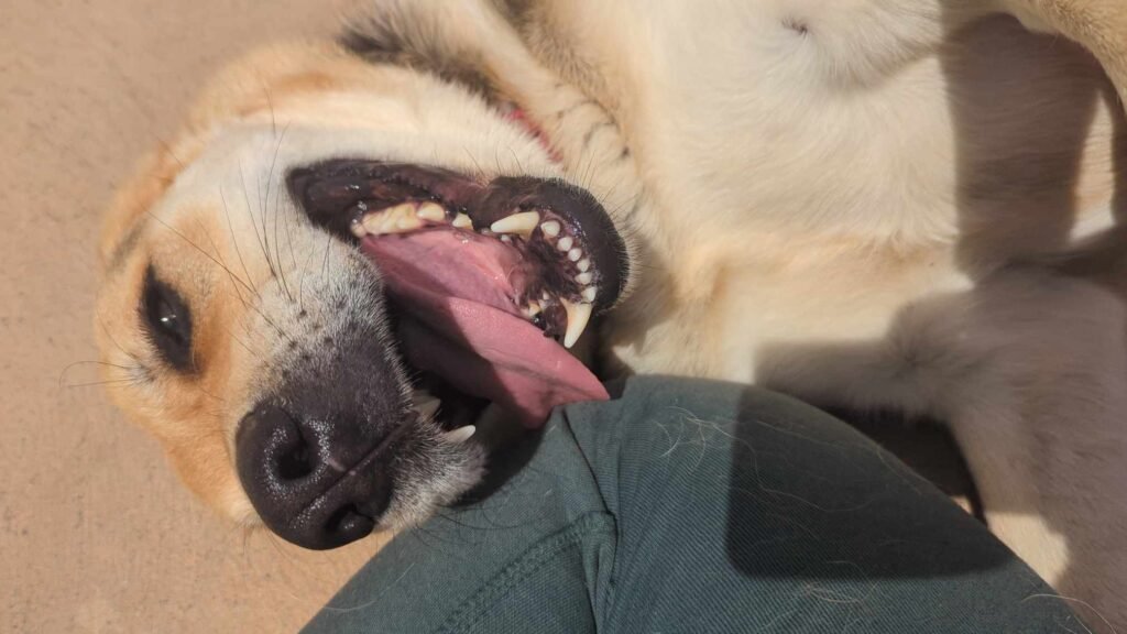 Lucky is around 2,5 years old and a large sized dog (currently 35kg).